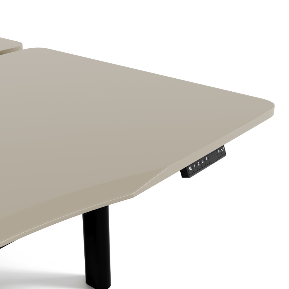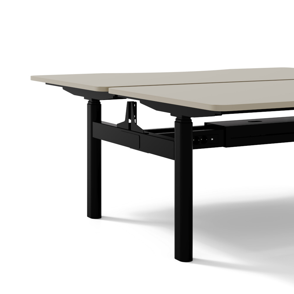 Biurko elektryczne SHIRAKAMI to nowoczesne rozwiązanie stworzone z myślą o komforcie i efektywności w przestrzeni biurowej. Jego konstrukcja to pojedyncza, wytrzymała rama oraz podzielony na dwa roboczy blat wraz z dwoma niezależnymi panelami kontroli. Pojedyncza rama zapewnia dużo miejsca na nogi i możliwość wykorzystania przestrzeni pod biurkiem. W czterech nogach biurka znajdują się 4 silniki, które działają cicho, lecz efektywnie, niezależnie podnosząc blat z prędkością 32 m/s. Taki system umożliwia stworzenie dwóch stanowisk pracy w jednym miejscu. Jest to idealne rozwiązanie dla współpracujących zespołów, które potrzebują wydzielonych obszarów do różnych zadań. Stanowiska te można oddzielić ekranami akustycznymi, uchwyty na które przewidzieliśmy projektując burko.