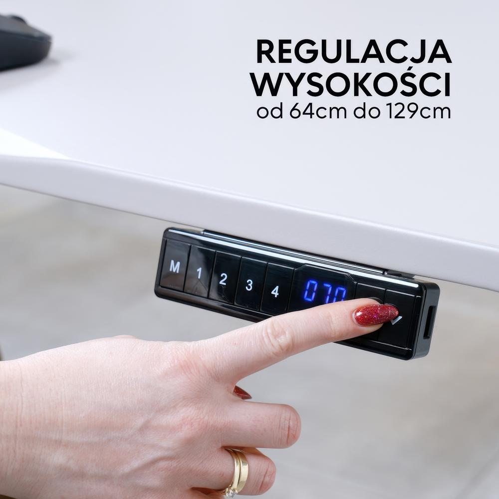 Mechanizm regulacji jest całkowicie bezpieczny. System antykolizyjny FINGER/CHILD PROTECT wstrzyma opadanie blatu, jeśli czujniki wykryją przeszkodę. W panelu znajdują się także porty USB, dzięki czemu łatwo podłączysz swoje urządzenia i doładujesz telefon.