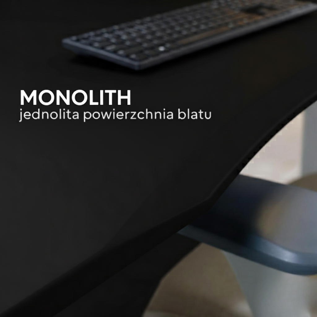 Każdy blat biurka HIRA został zrobiony w technologii MONOLITH, która polega na jednolitym pokryciu blatu oraz nóg kolorem w technologii proszkowej, bez łączeń na krawędziach, które z czasem mogłyby zbierać brud lub rozklejać się.
