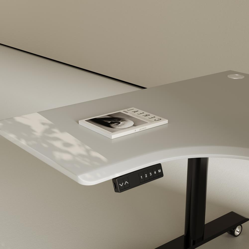 Biurko elektryczne narożne SANUKI z regulacją wysokości, to moc podwójnych korzyści.
