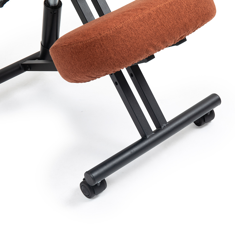 Ergonomiczne krzesło klęcznik Kenoko z dużym siedziskiem z pianki termoelastycznej i stalową ramą. Koła z hamulcami i koła PU samonastawne. Stabilność i bezpieczeństwo.