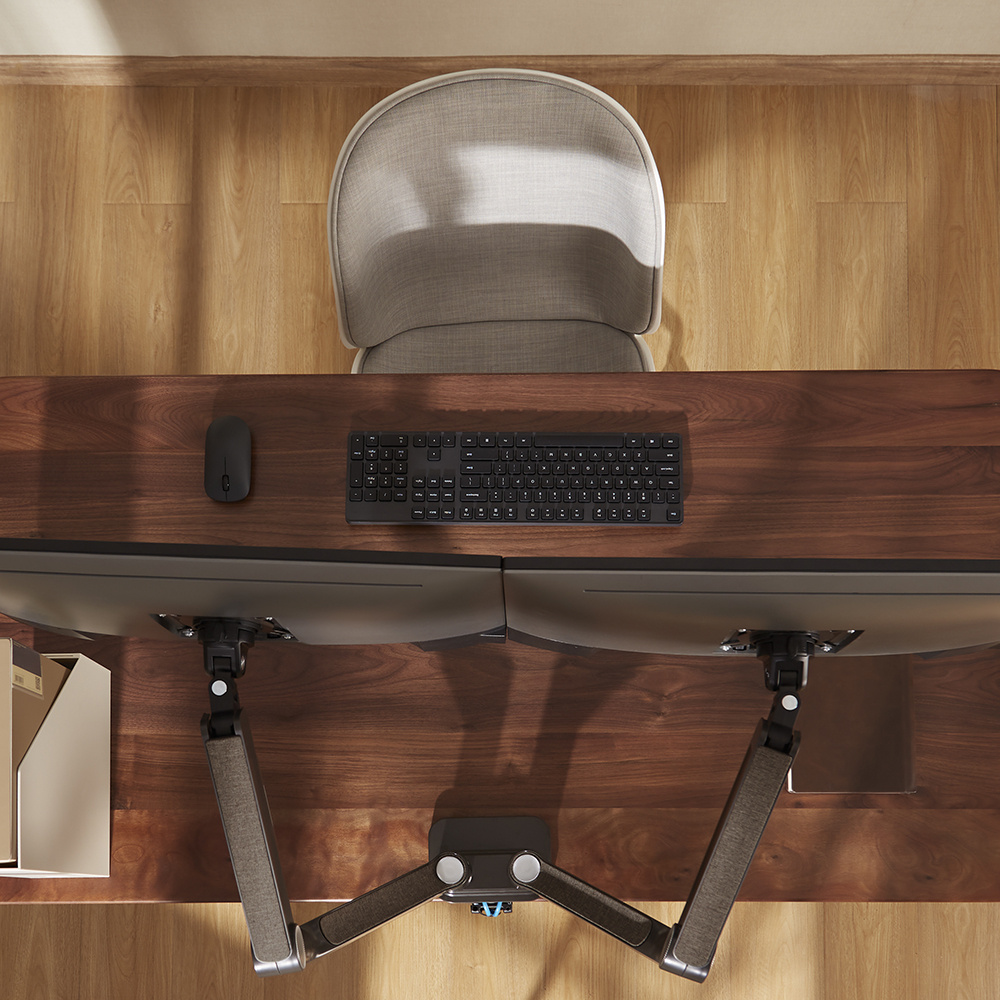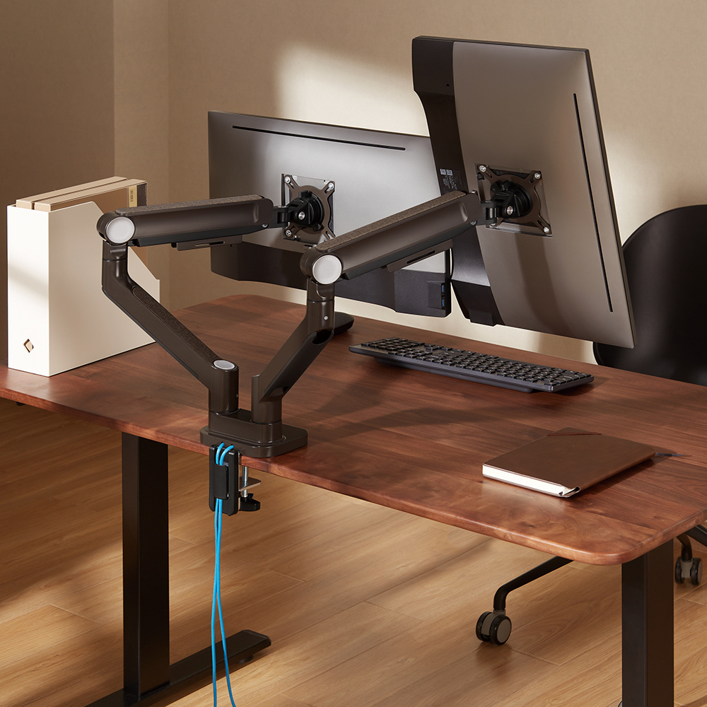 - Podwójny uchwyt do monitora 17-32 cale czarny/kawowy materiałowy KAMO to świetny wybór dla osób, które chcą ergonomicznie zorganizować swoje stanowisko pracy.