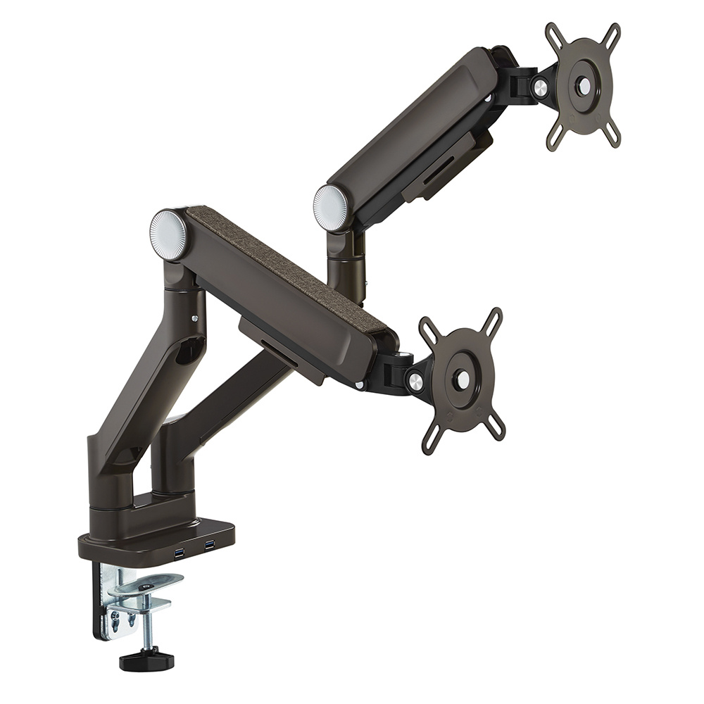 Podwójny uchwyt do monitora 17-32 cali czarny/kawowy matowy - materiałowy KAMO