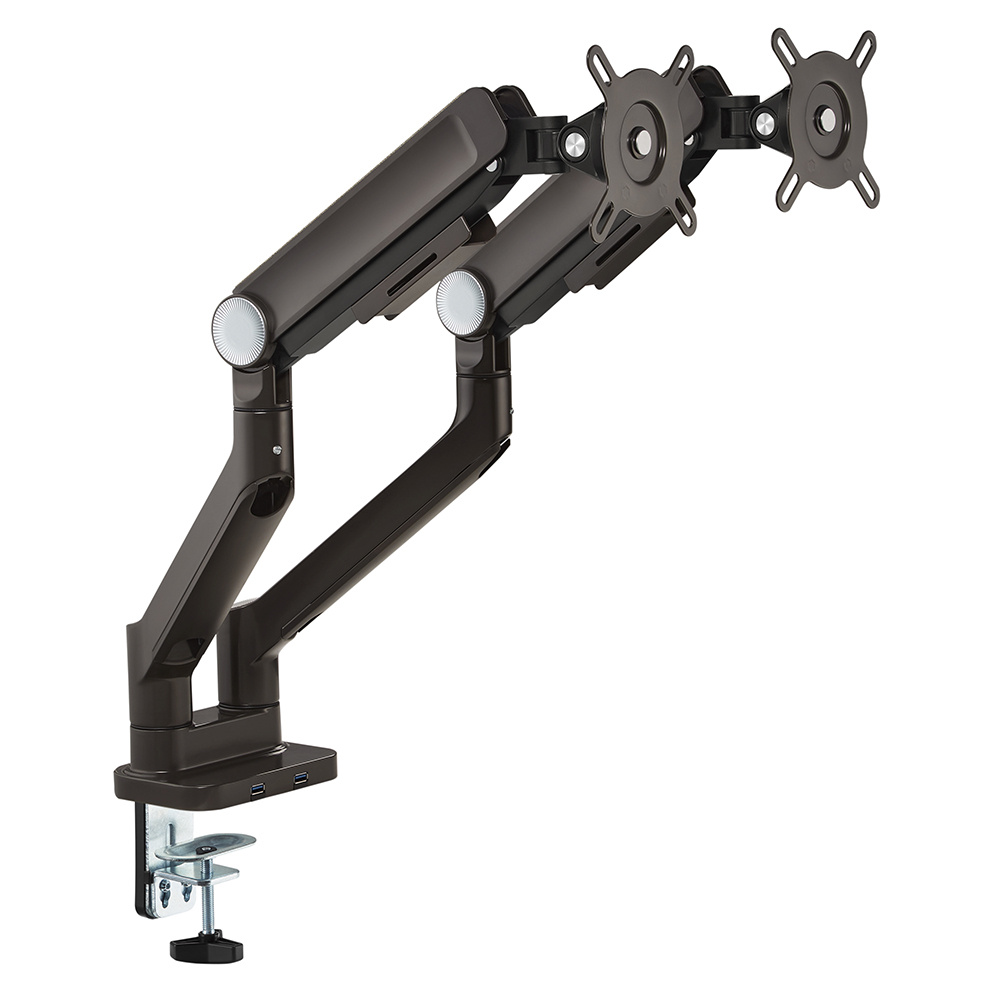 Podwójny uchwyt do monitora 17-32 cale czarny/kawowy materiałowy KAMO jest w pełni kompatybilny z uniwersalnym systemami montażowymi VESA 100x100 mm oraz 75x75 mm. Dzięki temu produkt sprawnie współpracuje z szeroką gamą urządzeń. Bezpieczeństwo i stabilność gwarantuje wysokie dopuszczalne obciążenie jednego monitora, które sięga aż 8 kg. Uchwyt posiada mechanizm sprężynowy, który zapewnia płynną regulację pozycji ekranu w każdej płaszczyźnie. Monitory możesz dzięki temu dopasować w pionie, w poziomie i pod kątem nachylenia, co podnosi komfort pracy i niweluje dolegliwości spowodowane długotrwałym użytkowaniem ekranu.
