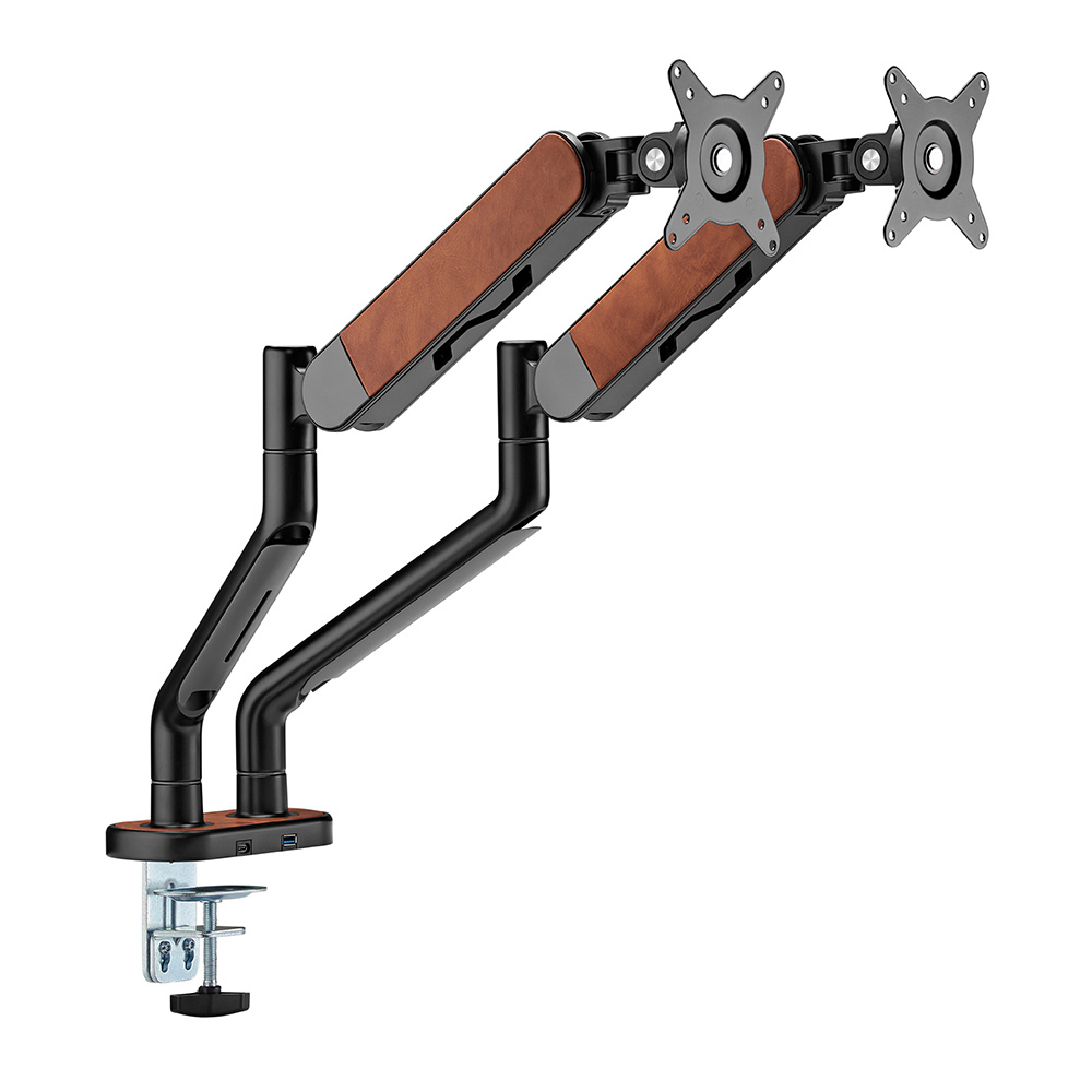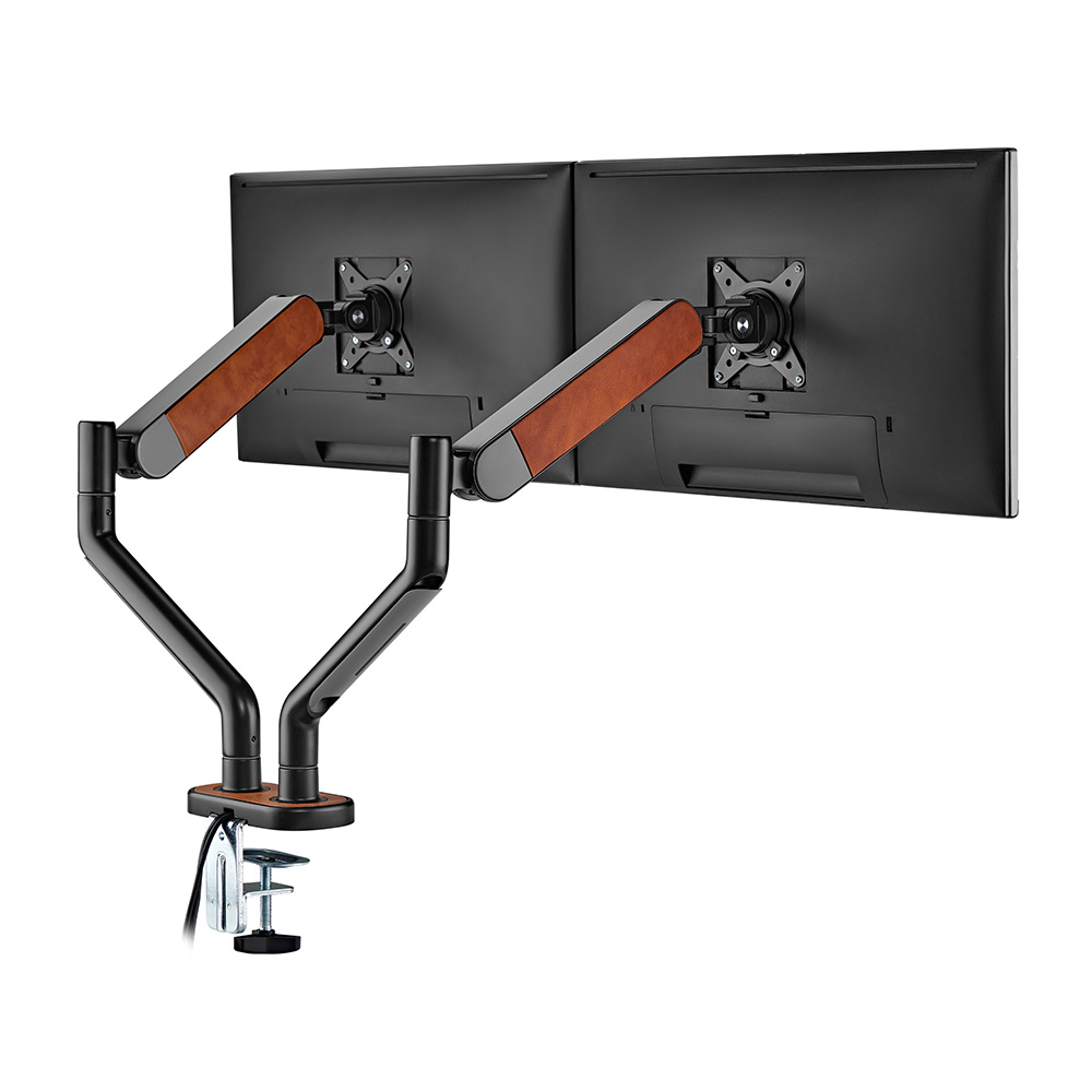 Podwójny uchwyt do monitora 17-35 cali czarny/brąz - ekoskóra WASHI
